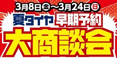 3/8(金)~3/24(日)まで 「夏タイヤ早期予約大商談会」開催致します! 今、お持ちの夏タイヤは大丈夫ですか?? こんな状態になっていませんか?↓ ↓ ① 使用年数が3~4年以上経っている ② タイヤのミゾが減っている ③ タイヤにヒビ割れがみられる お持ちの夏タイヤを1本でもご持参いただければ...