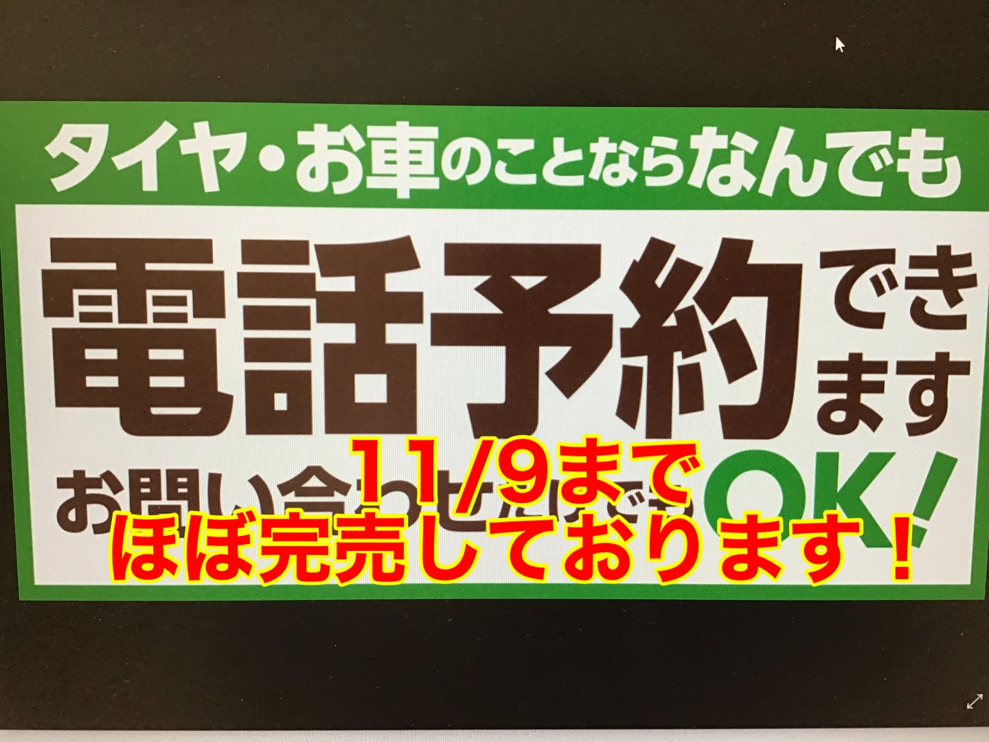 作業予約11/9まで完売です!