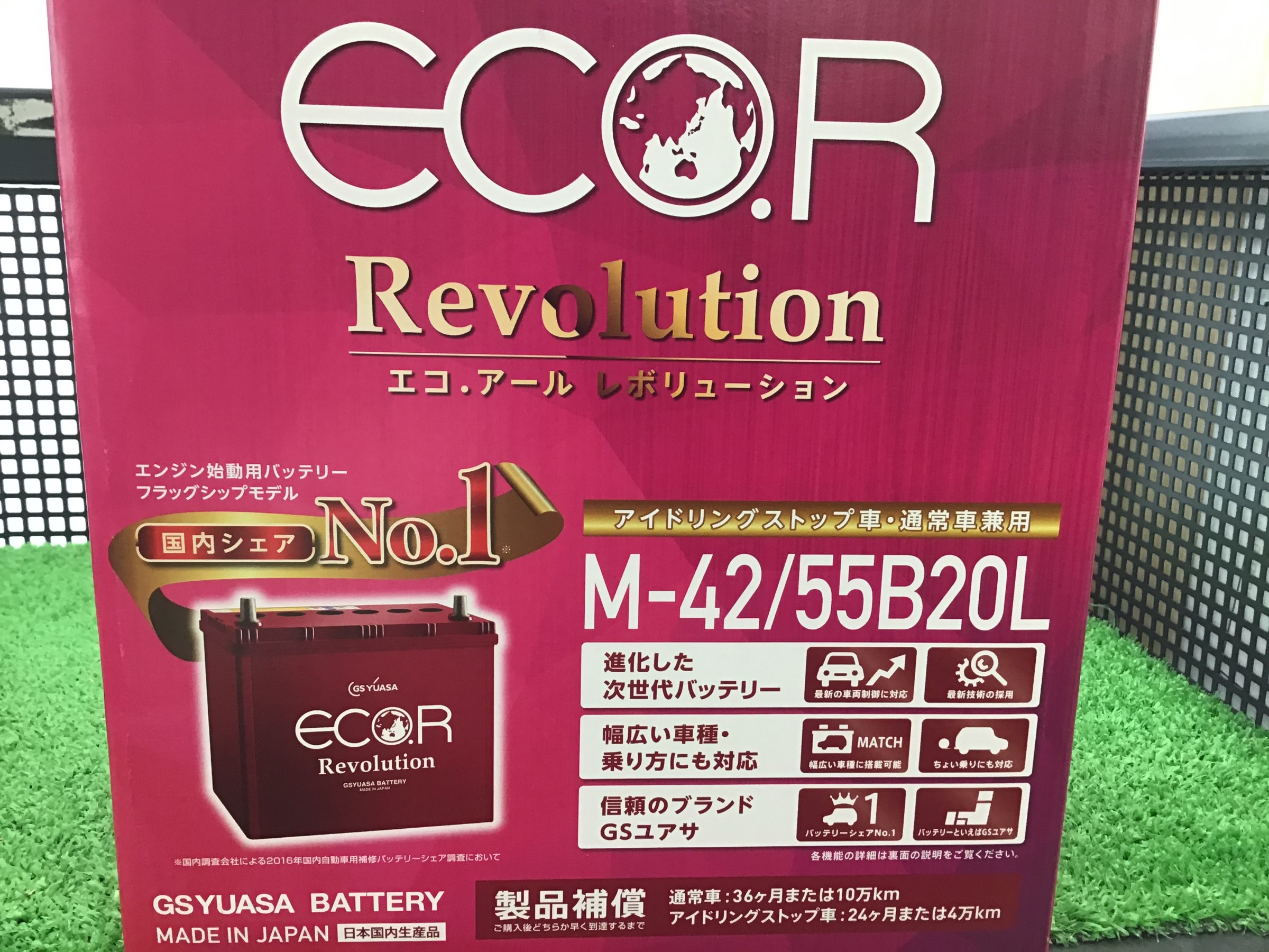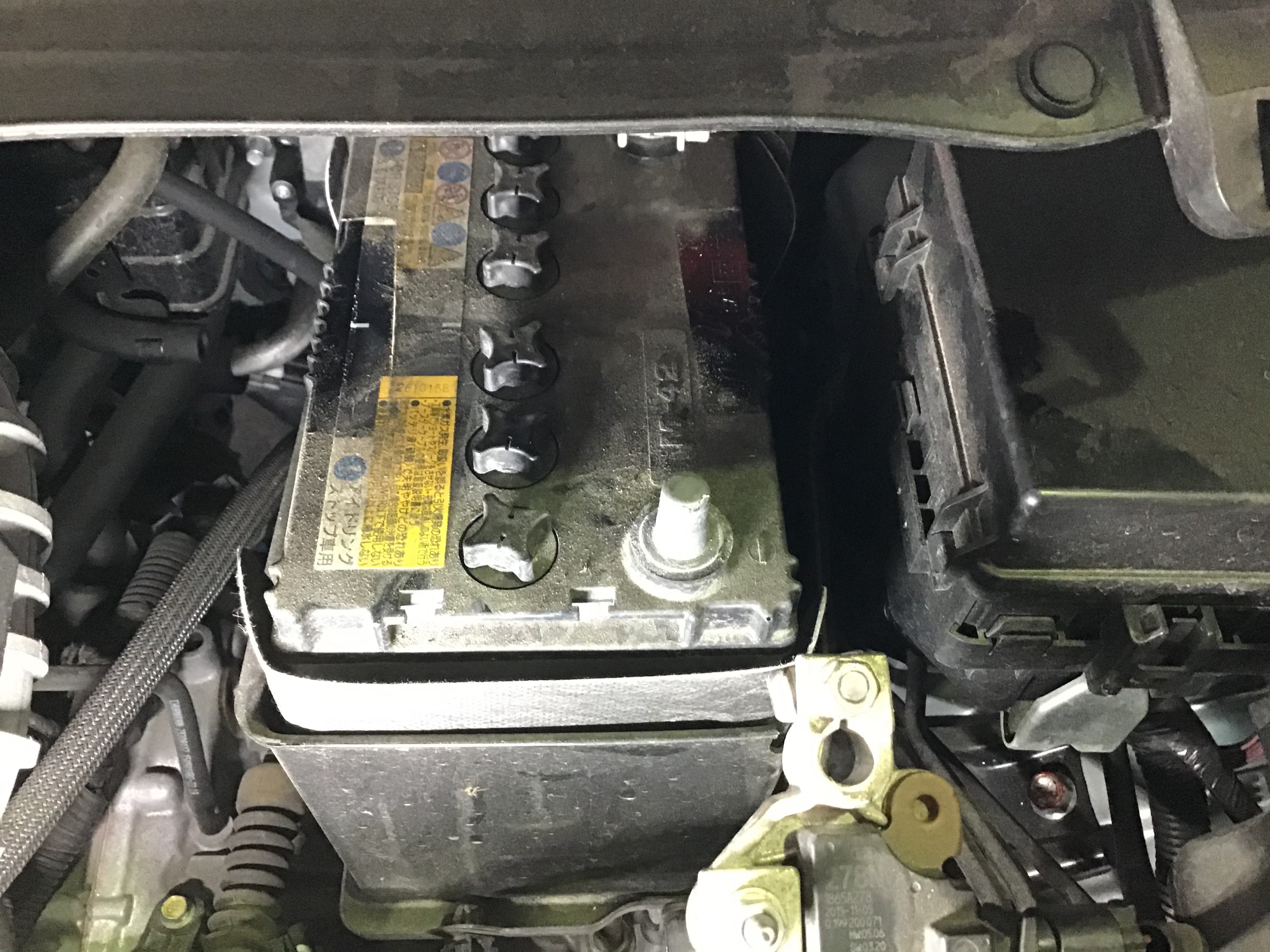 アイドリングストップ車でしたので専用バッテリーを装着です!