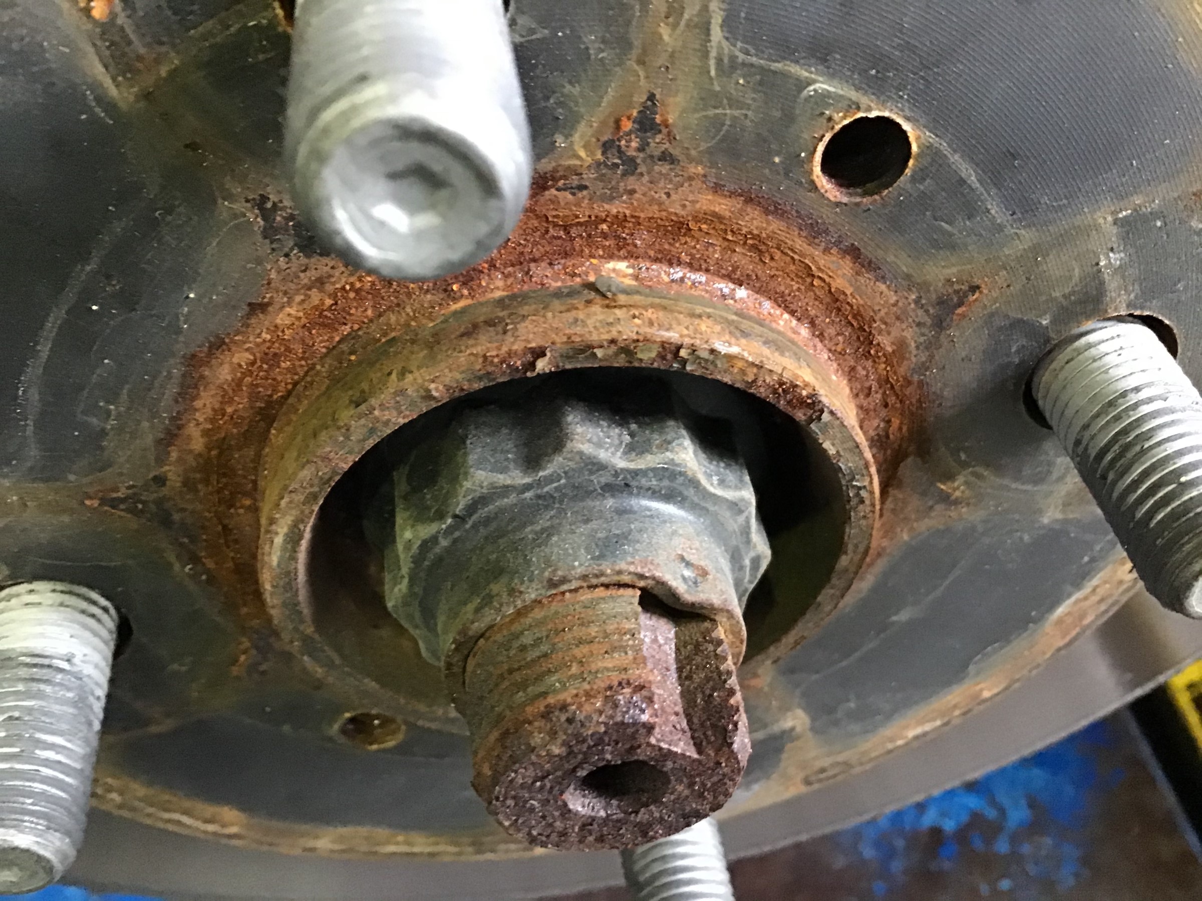 たまにですが「ナットを外してもタイヤが外せない!」というお車に遭遇します(/_;)