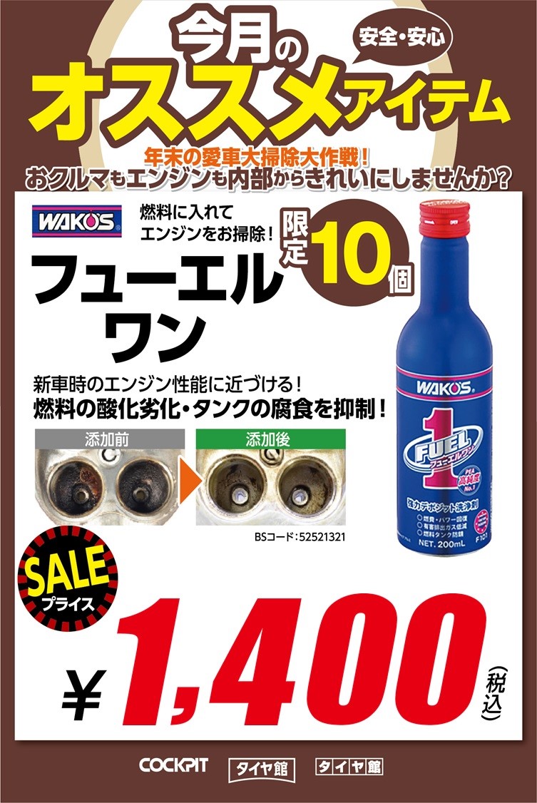 第一弾は、当店での添加剤売り上げ数NO.1「ワコーズ フューエルワン」