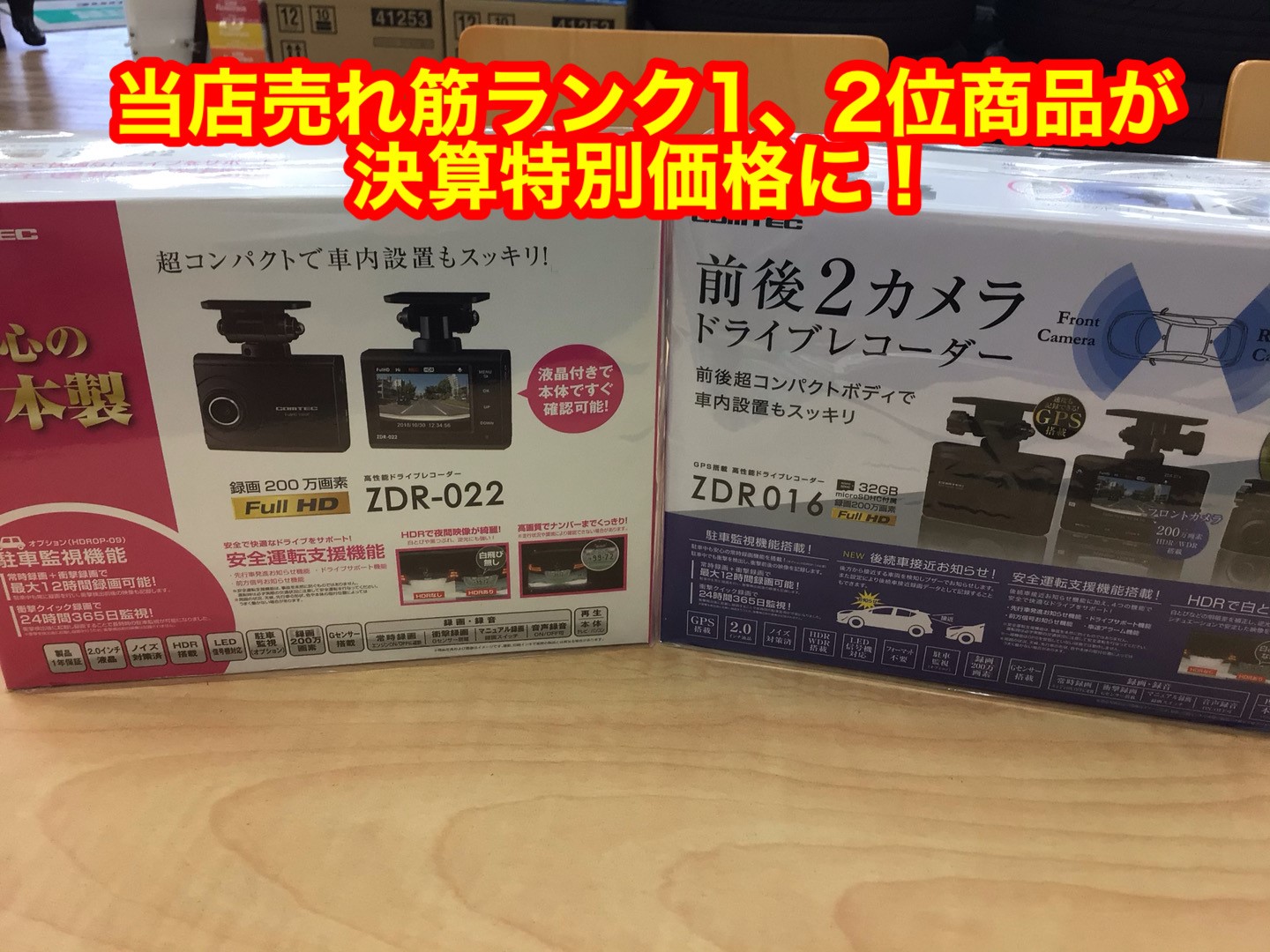 当店でのドライブレコーダー販売台数が1・2位の商品を各限定1台で!