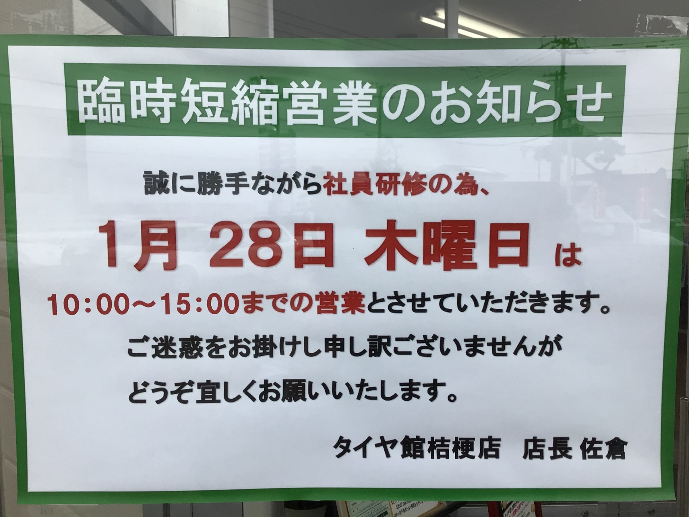 本日「臨時短縮営業」となります