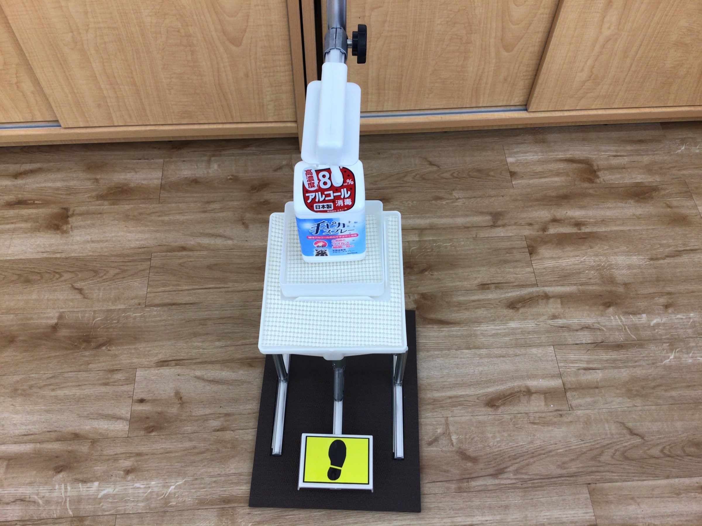 最近スーパー等の色々な店舗でも見かける、足踏み式の消毒液スタンドです(*´▽`*)