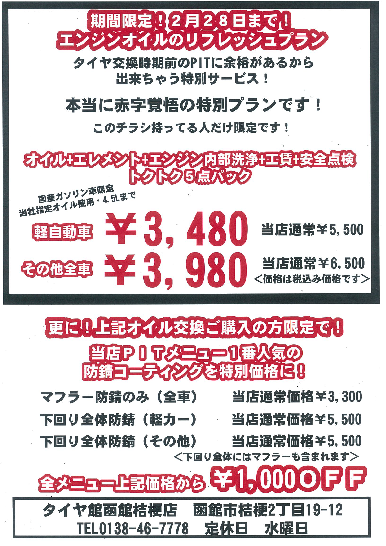 タイヤ交換スタート前の2月だから出来る今だけプラン(/・ω・)/