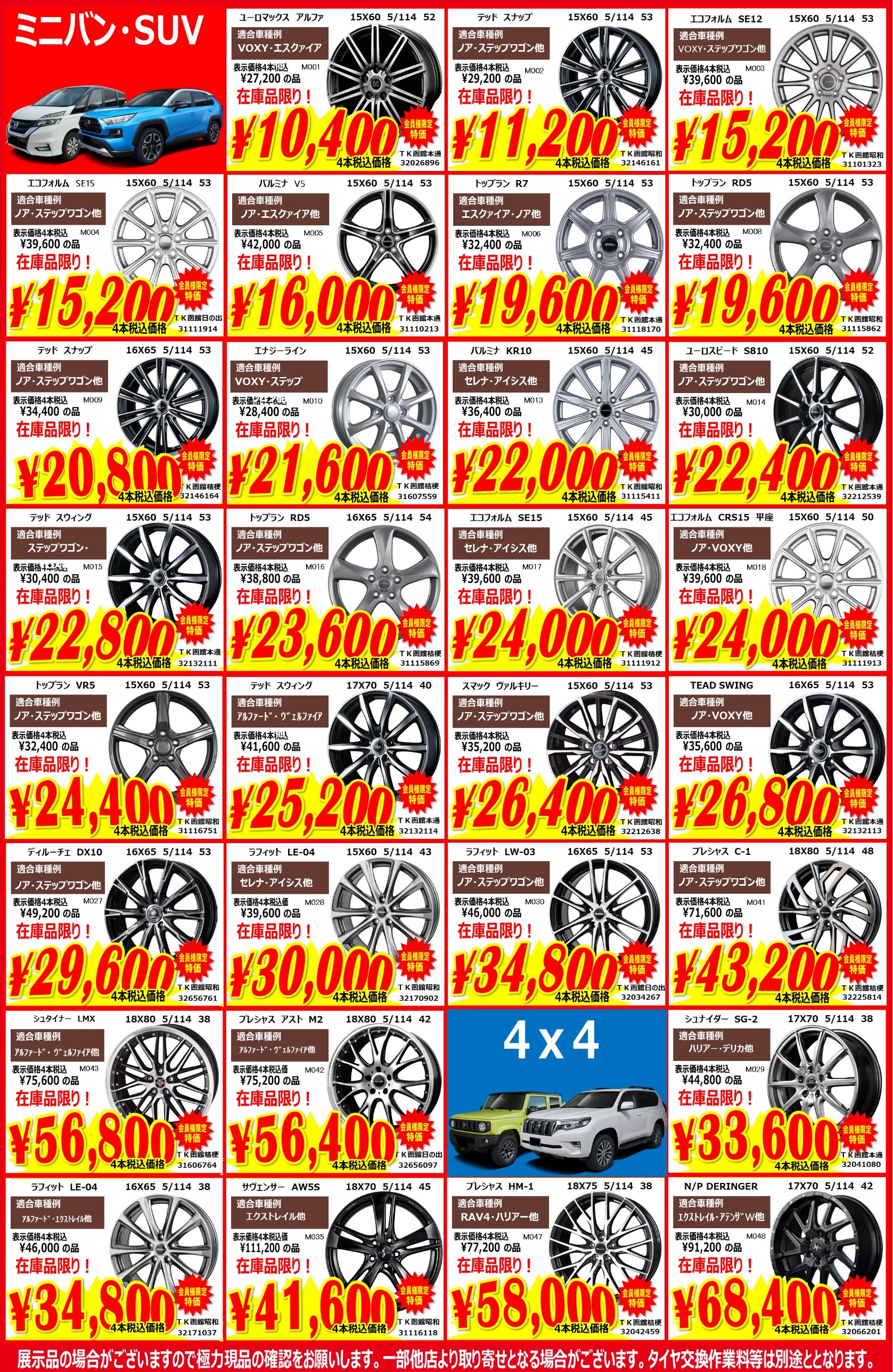 今回はミニバン・SUV・4X4向けのホイール達 ↓ ↓ ↓