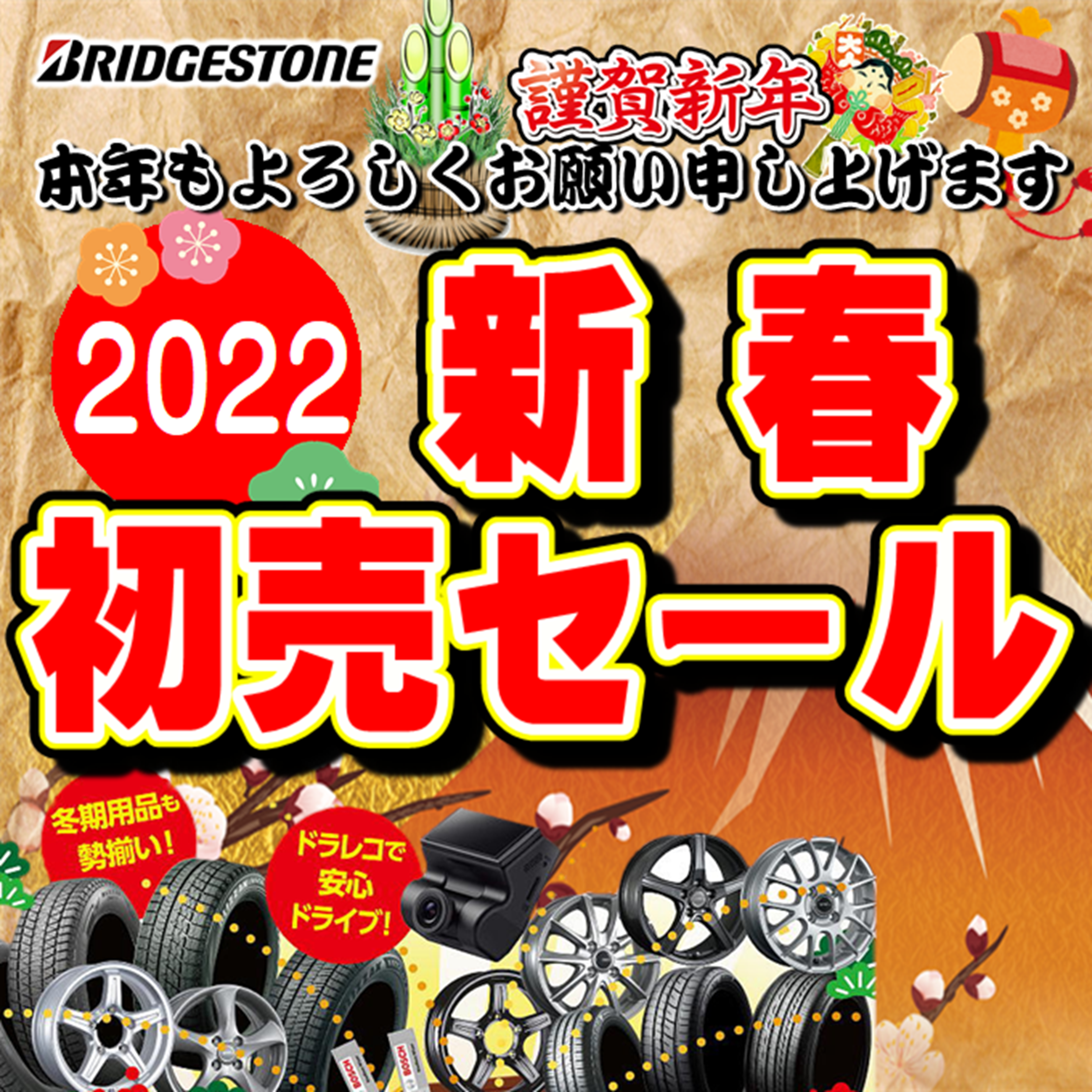 タイヤは勿論、ホイールやメンテナンス商品も初売り価格にてご提供致しますので、