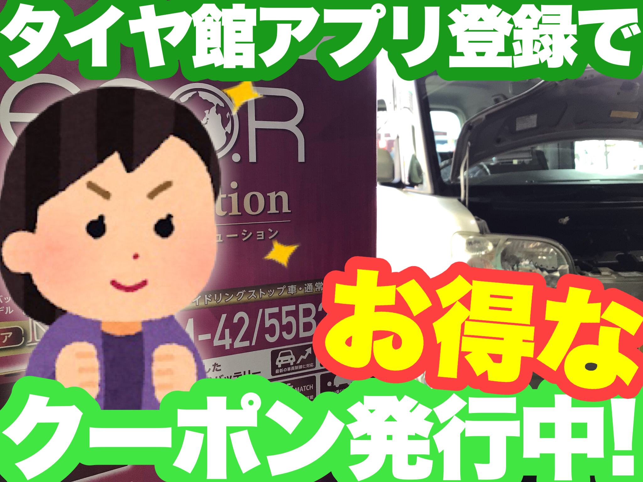 タイヤ館アプリのご登録でお得なクーポン発行中ですよ!!!