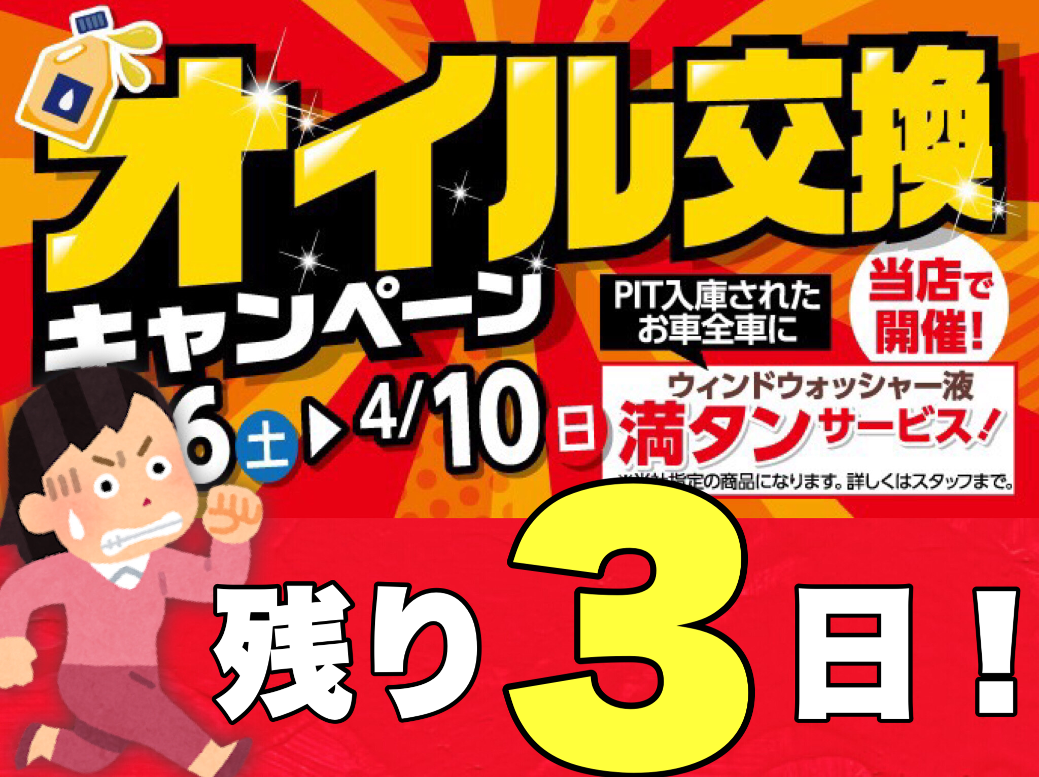 『オイル交換キャンペーン』ラスト3日\(◎o◎)/!