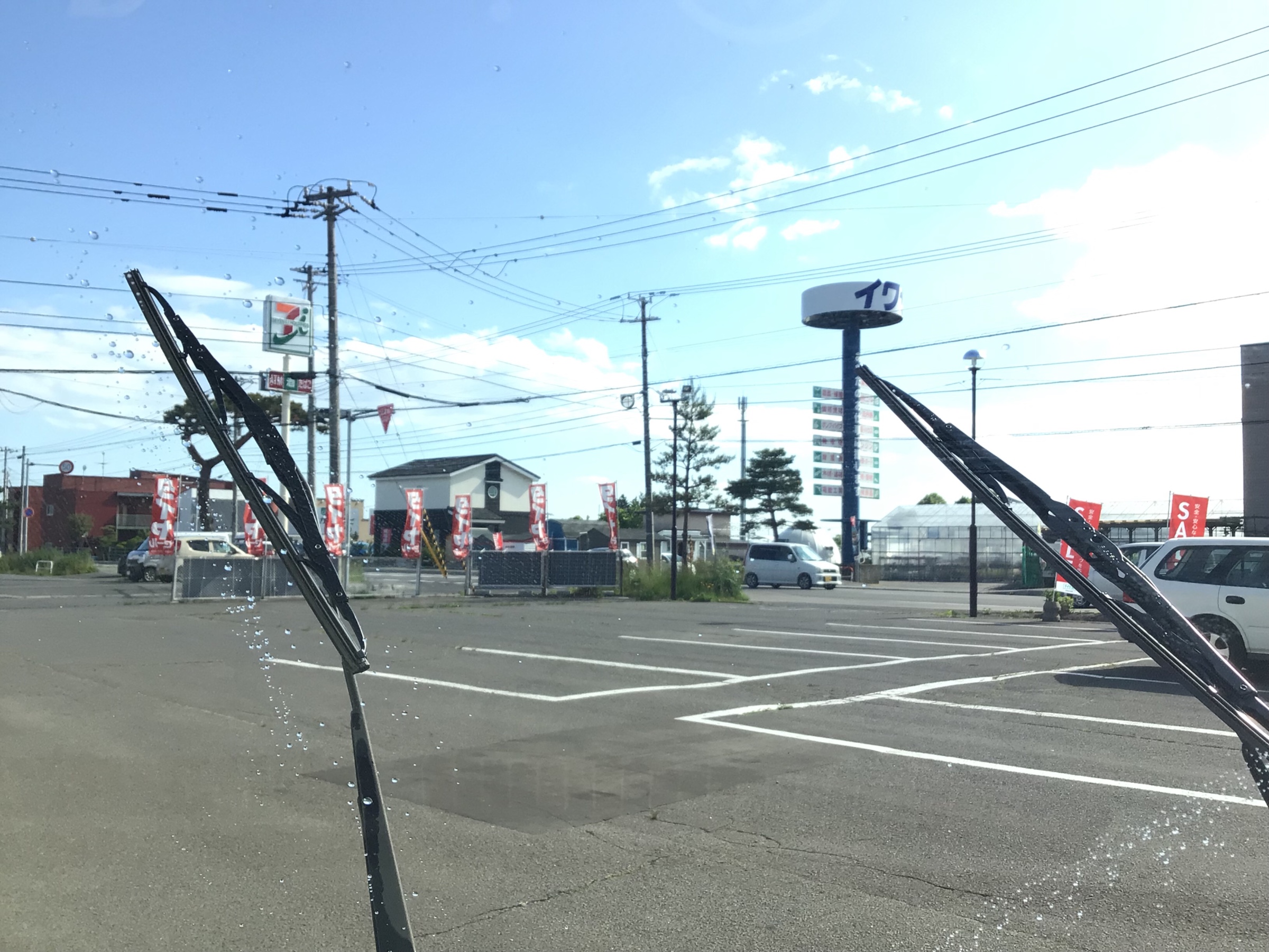 ワイパーを浮かせてウォッシャー液をバシャバシャ出している状態です↓↓↓