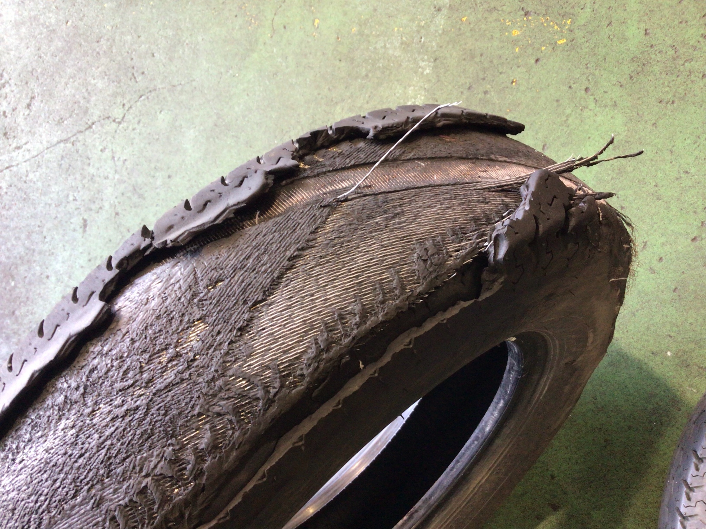 砂利や水が入り込みタイヤ内部の密着が低下し剥離が起こったのかも!