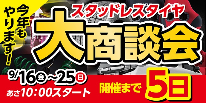 スタッドレスタイヤ大商談会開催まで後5日!