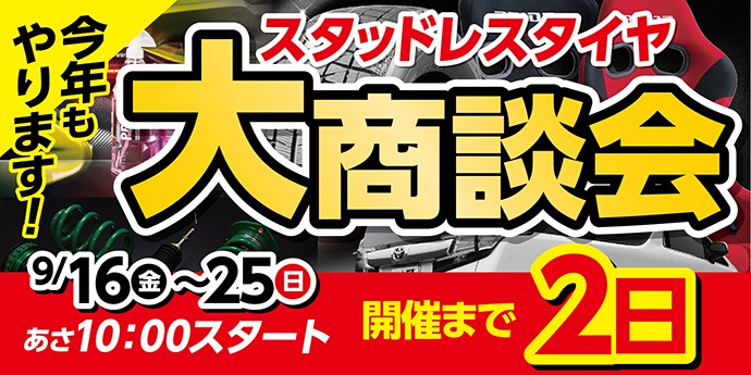 スタッドレスタイヤ大商談会開催まで後2日‼️