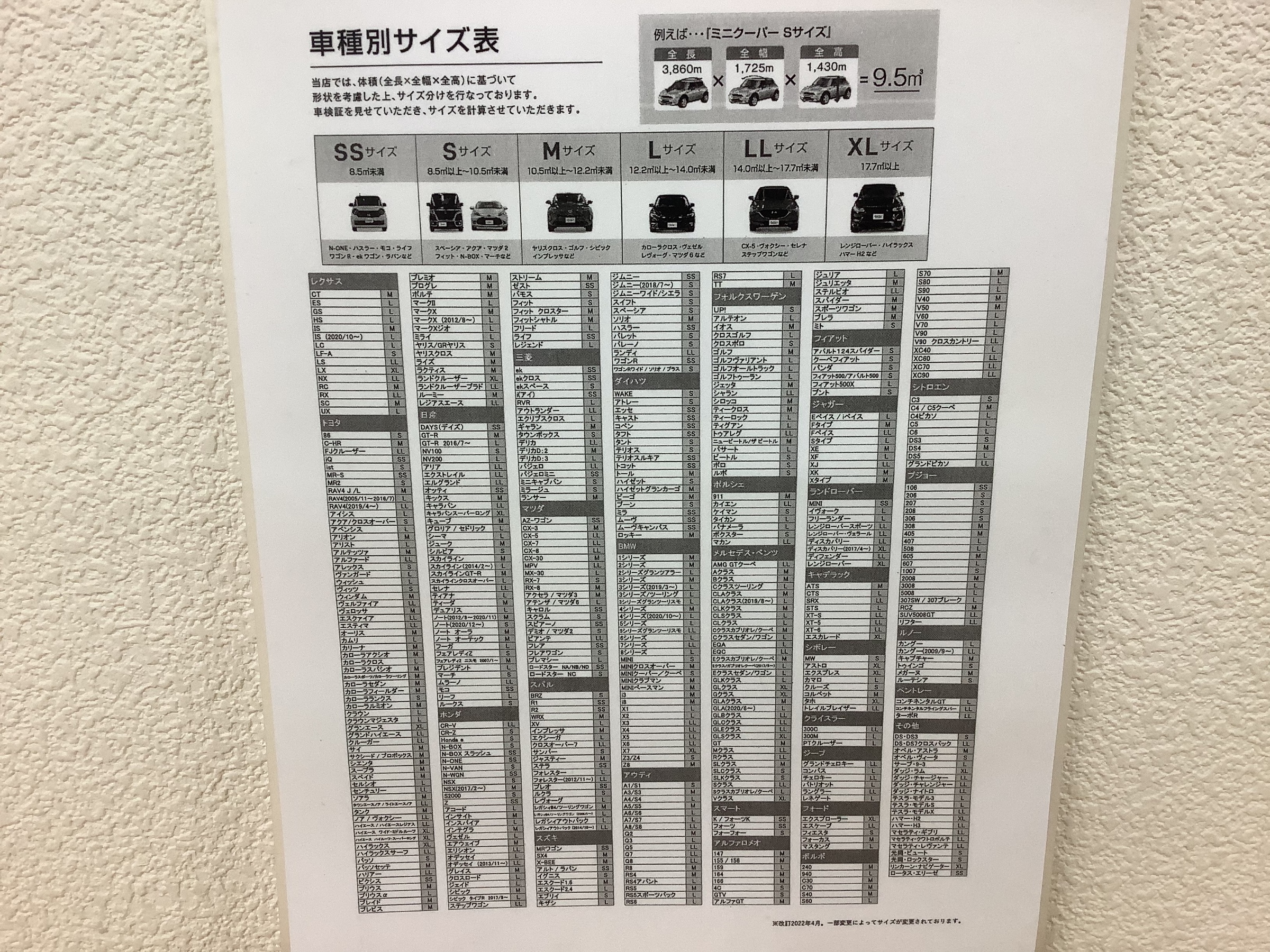 LLサイズ⇒ レクサスRX、アルファード等