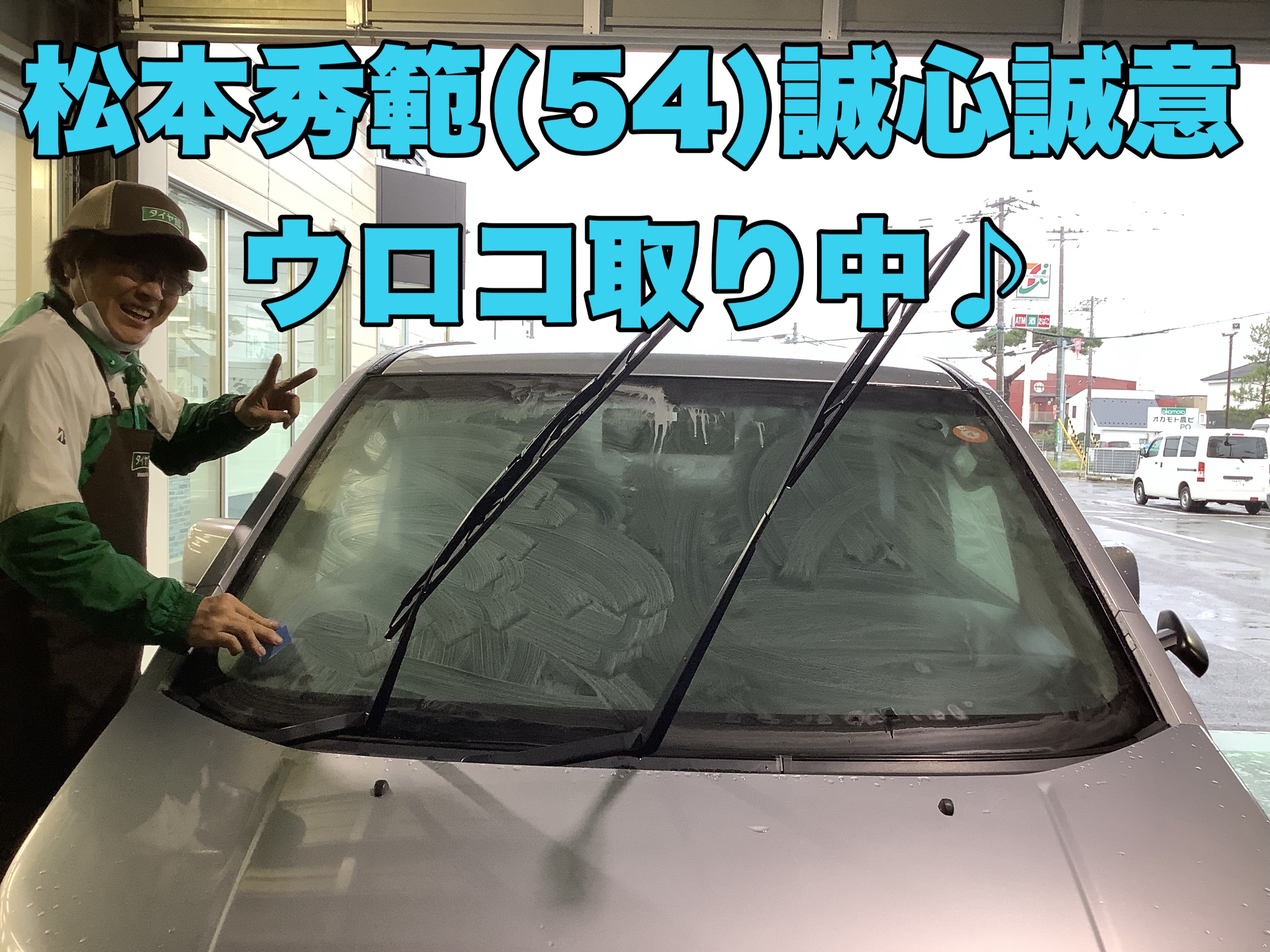 ②ガラスクリーナーで充分に油膜を取ります!←イマココ笑