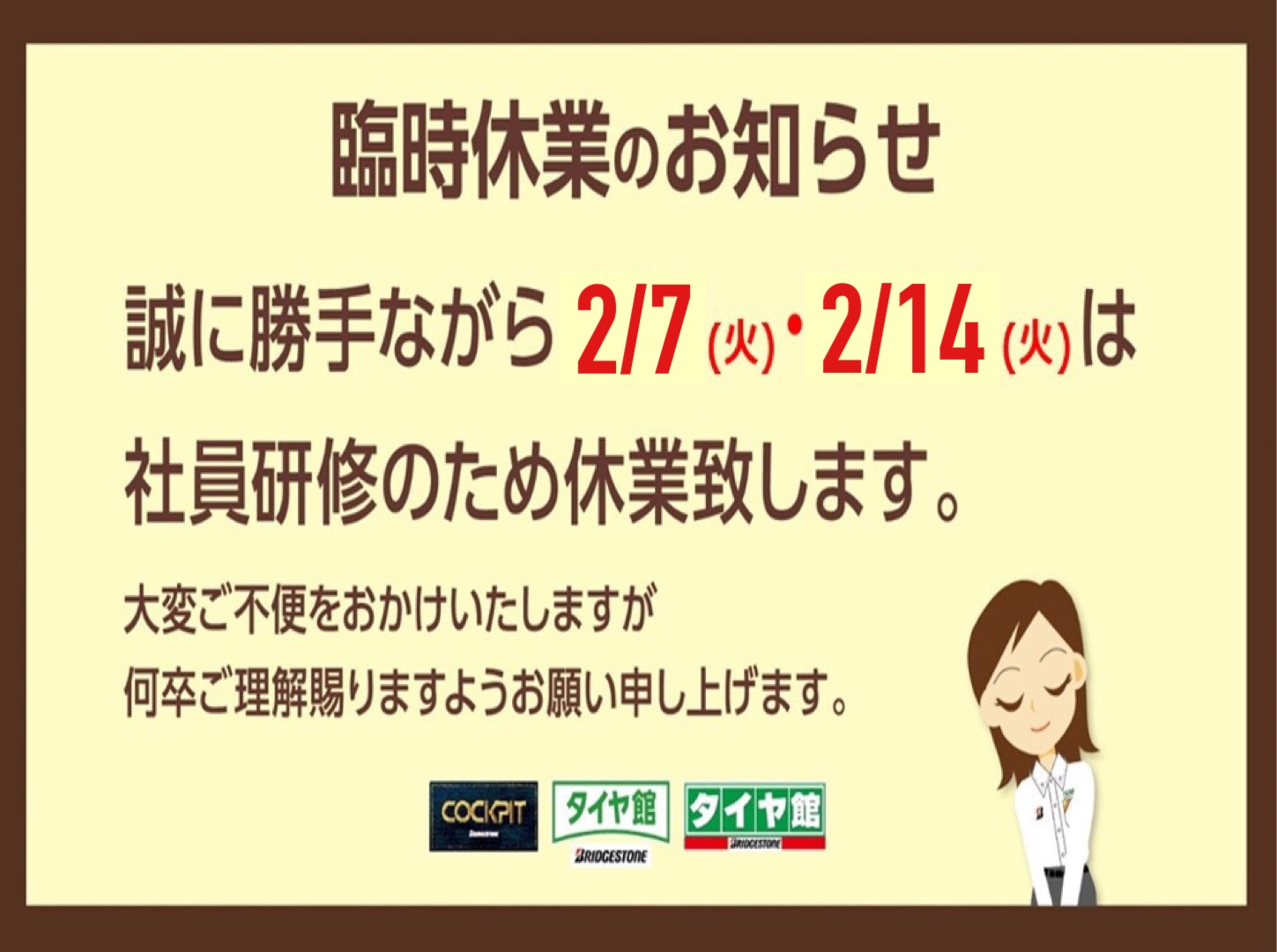 2/7(火)・2/14(火)臨時休業のお知らせm(._.)m