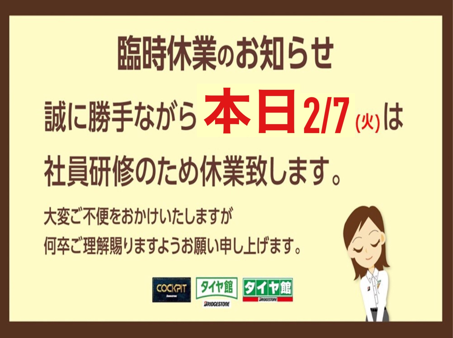 本日は社員研修の為、臨時休業とさせて頂きますm(._.)m