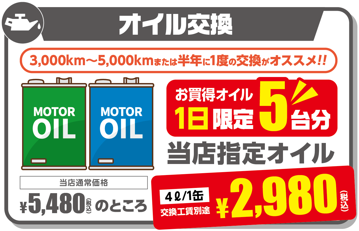 お電話でもWEBでもオイル交換やタイヤ交換のご予約が可能!