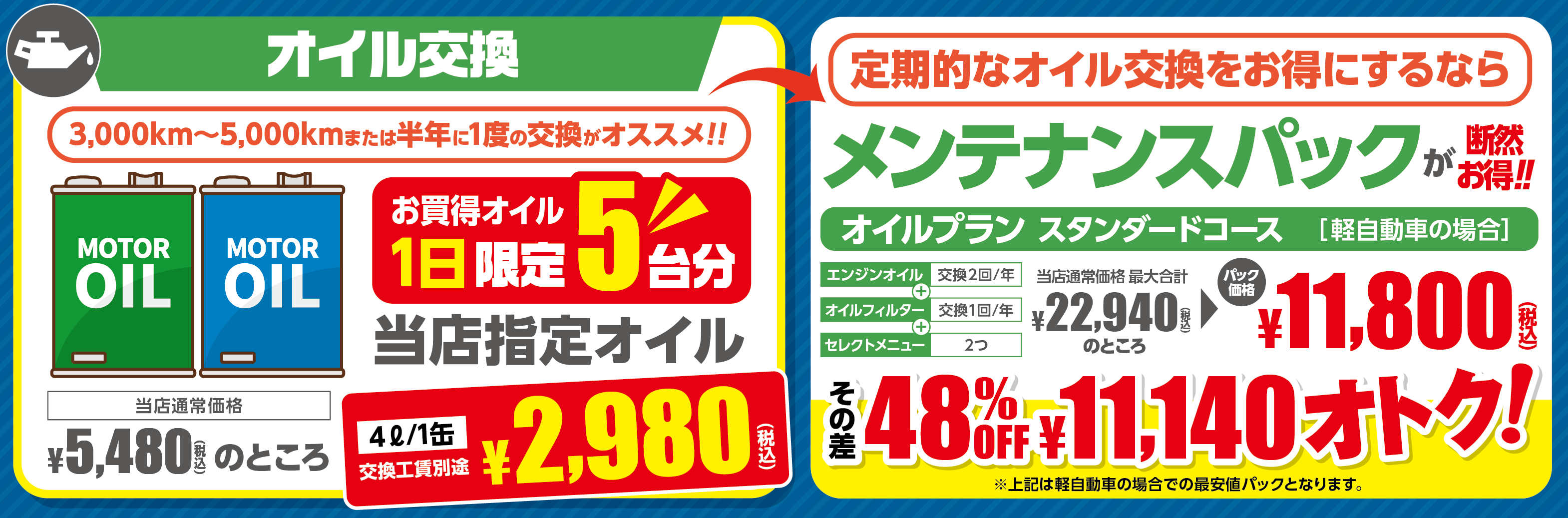 お得なオイルやメンテナンスのパックもご用意ございます!