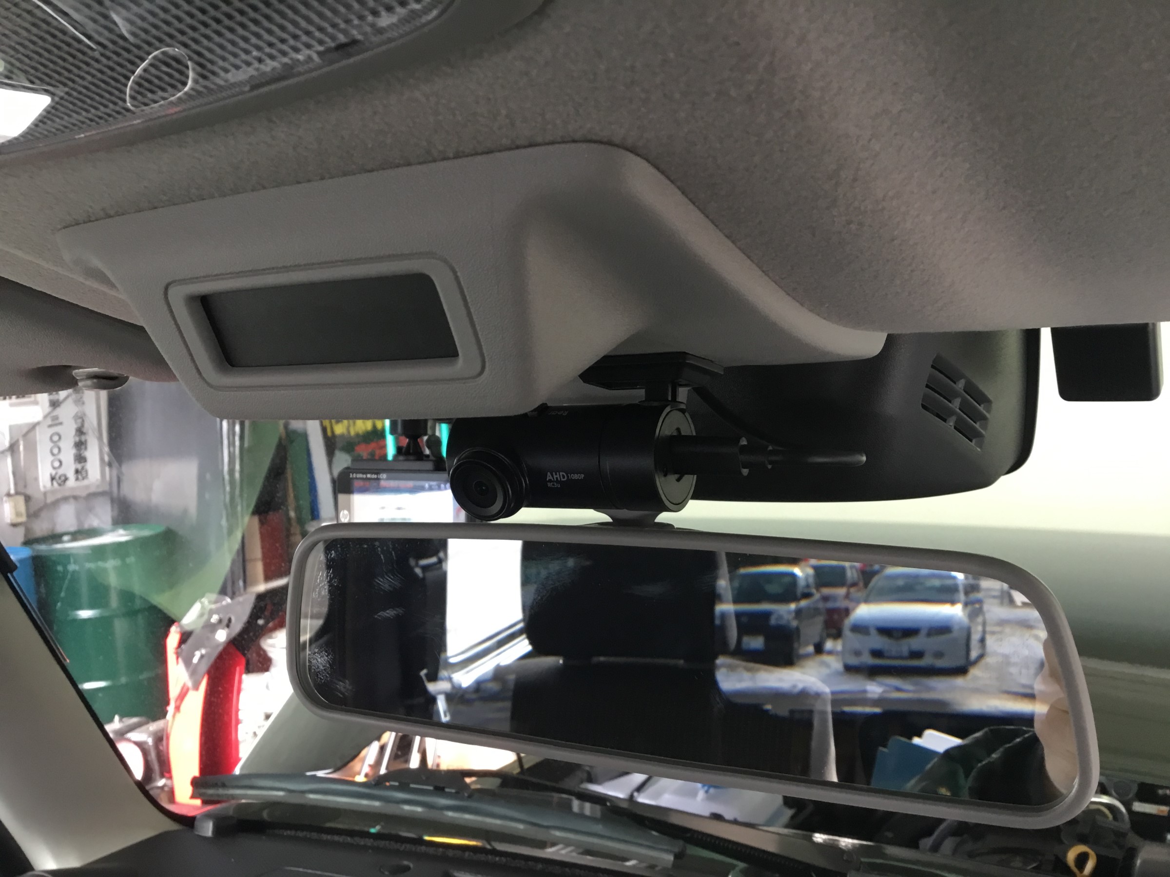 お客様のご要望でRカメラは室内も写るように、ルームミラー上部に取付してました。