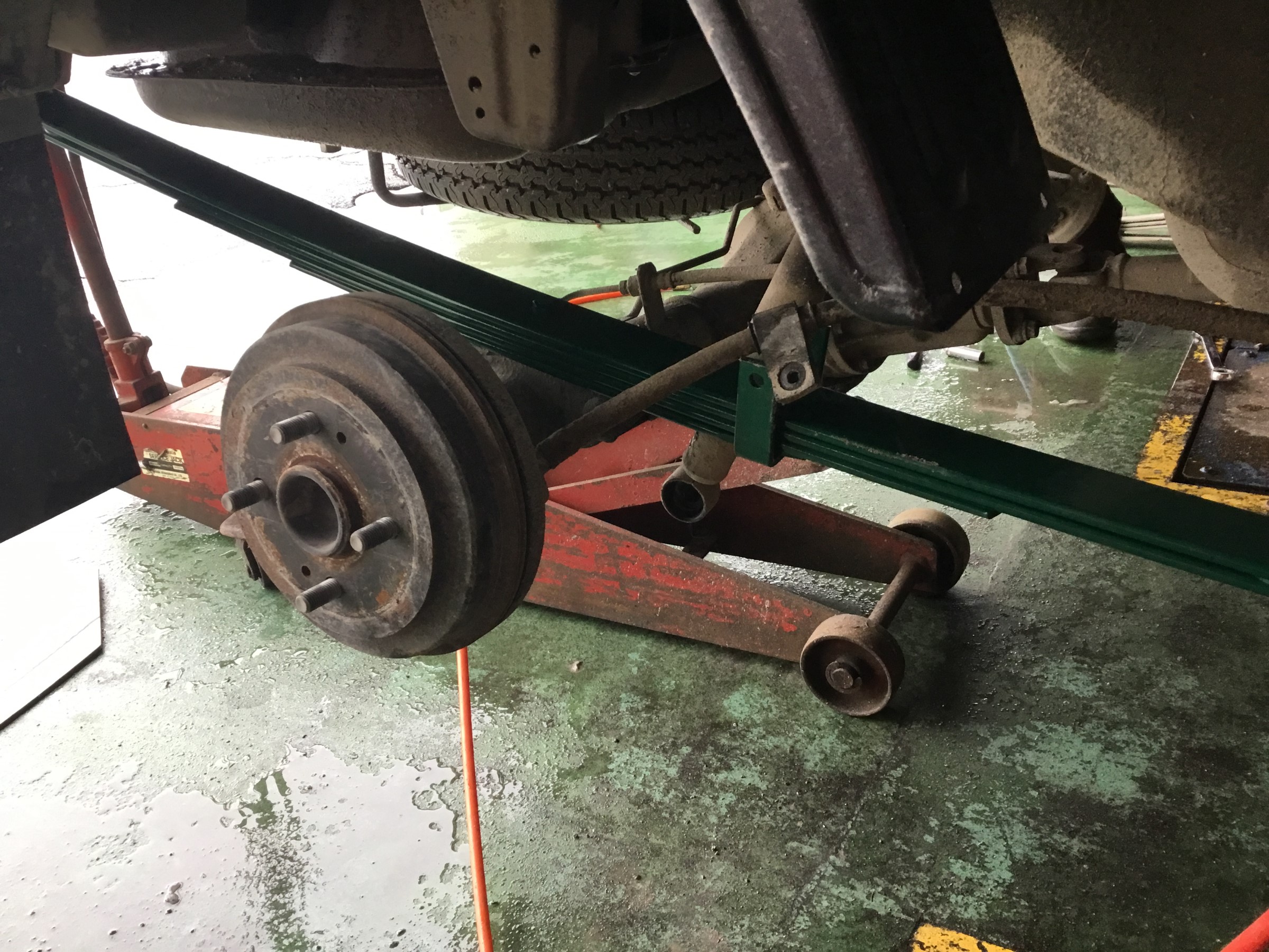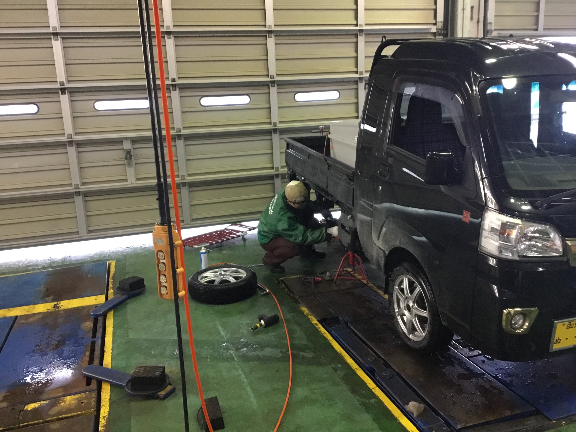 今日は火曜日に入庫作業したハイゼットトラックへのサスペンションKITの取付を。