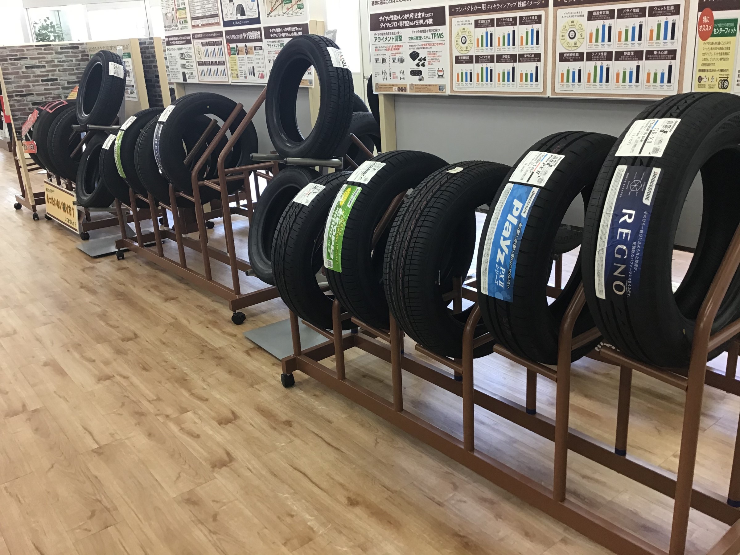店内の夏タイヤ展示もPOPが付いたり、徐々に進行しております!