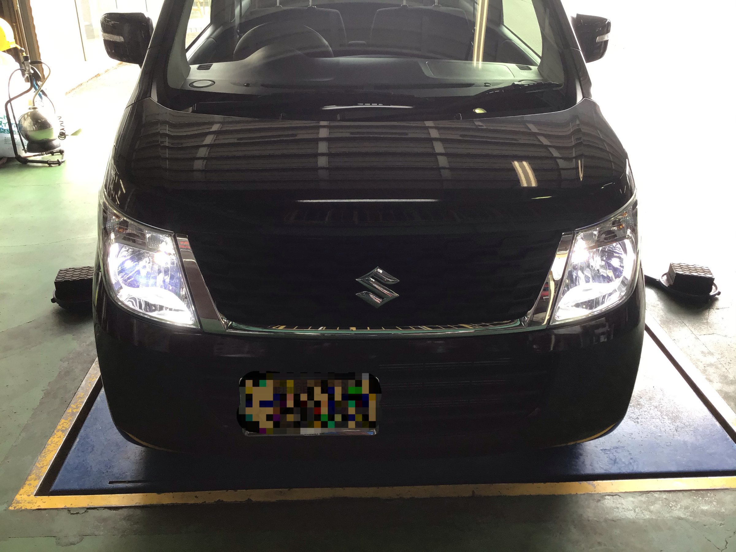 常連様のワゴンRのヘッドライトをハロゲン球からLEDへ交換しました(*'ω'*)