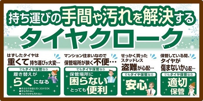 当店ではタイヤクローク(タイヤ保管)を実施しております。