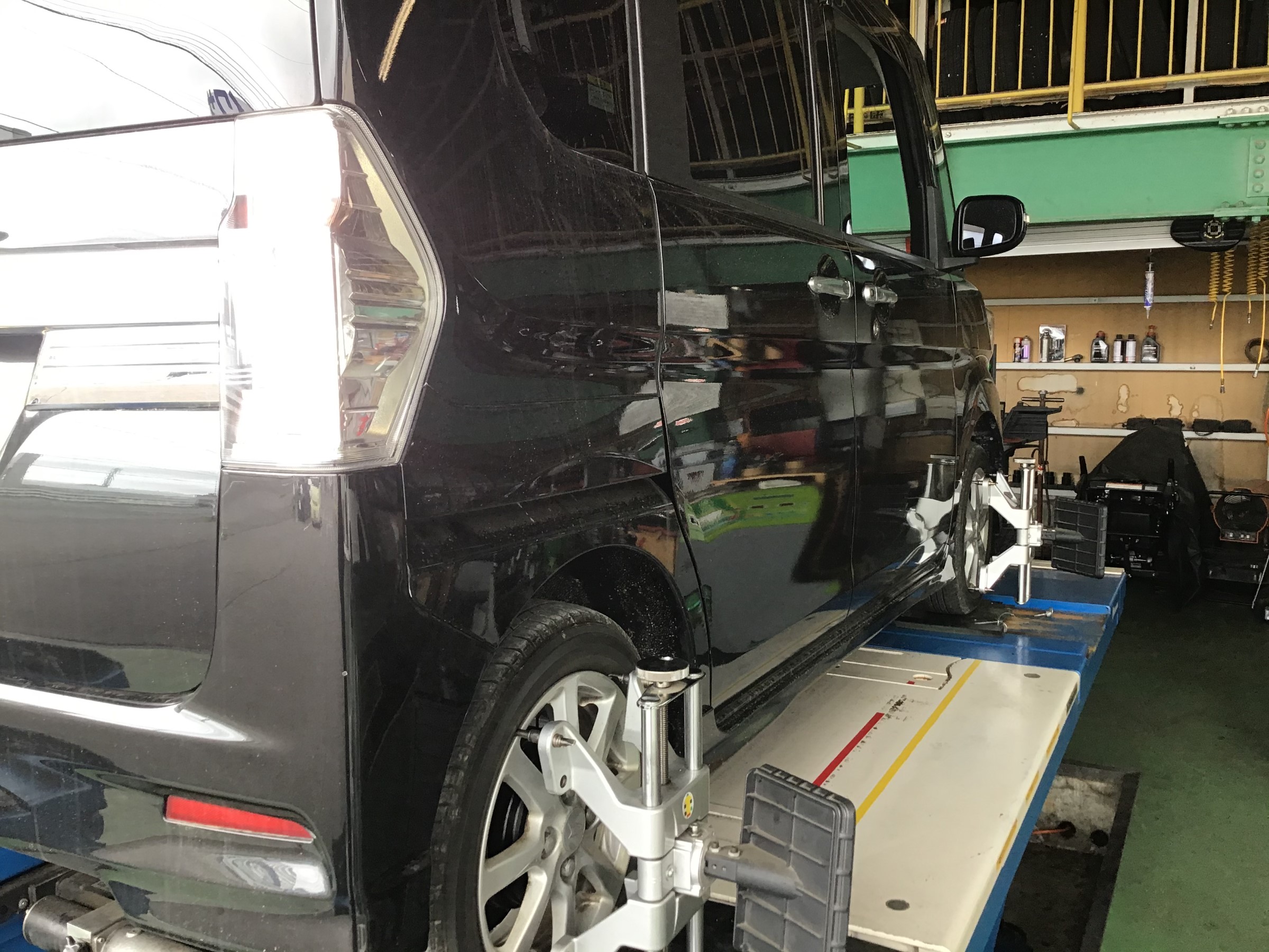 松本さん担当。整備工場さんからご依頼のタント。サスを純正に戻したのでアライメントです。