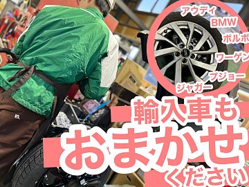 ど~も~ 今回はお客様からのご相談が多かった「輸入車」について 取り上げちゃいます! 輸入車のタイヤ交換や新品タイヤ探しに苦労されていませんか? タイヤ館はブリヂストン直営店でございます。 輸入車のタイヤ交換はもちろん メーカーカタログに載っていないタイヤに関してもお取り寄せが可能...