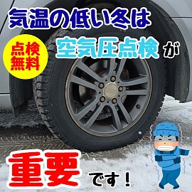 冬の空気圧は効きにも影響!無料点検ご利用下さい!!!