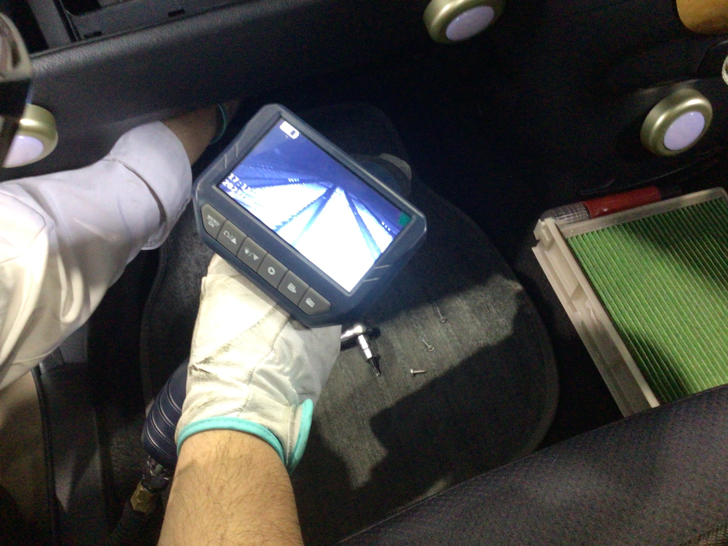 エアコンフィルターの装着口から、