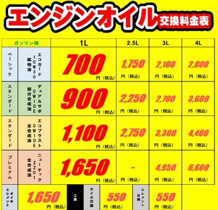 ~車種別参考 L 数~ ※エレメント交換無しの場合