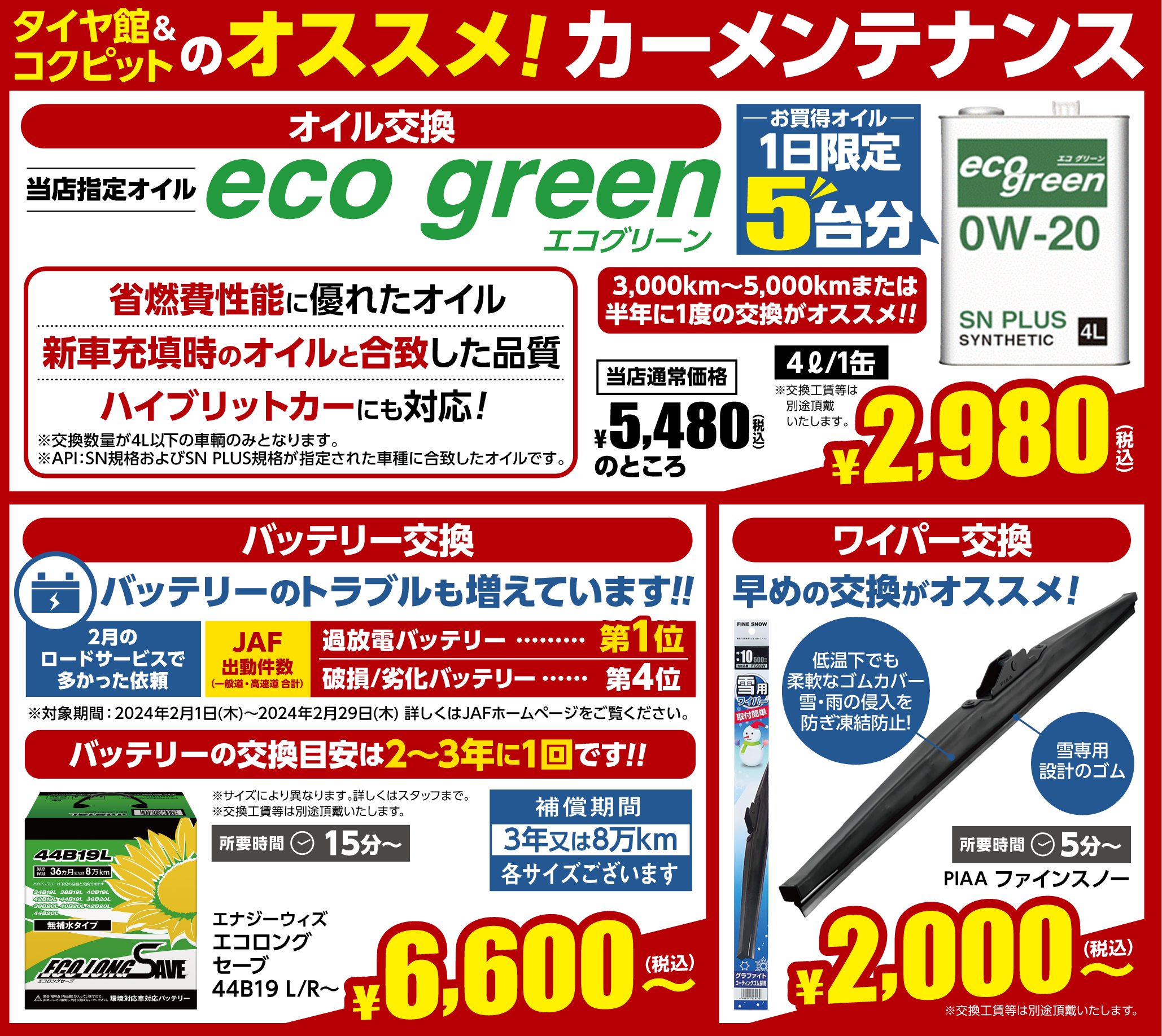 2/7(土)~3/2(日) まで「メンテナンスキャンペーン」開催中です!!