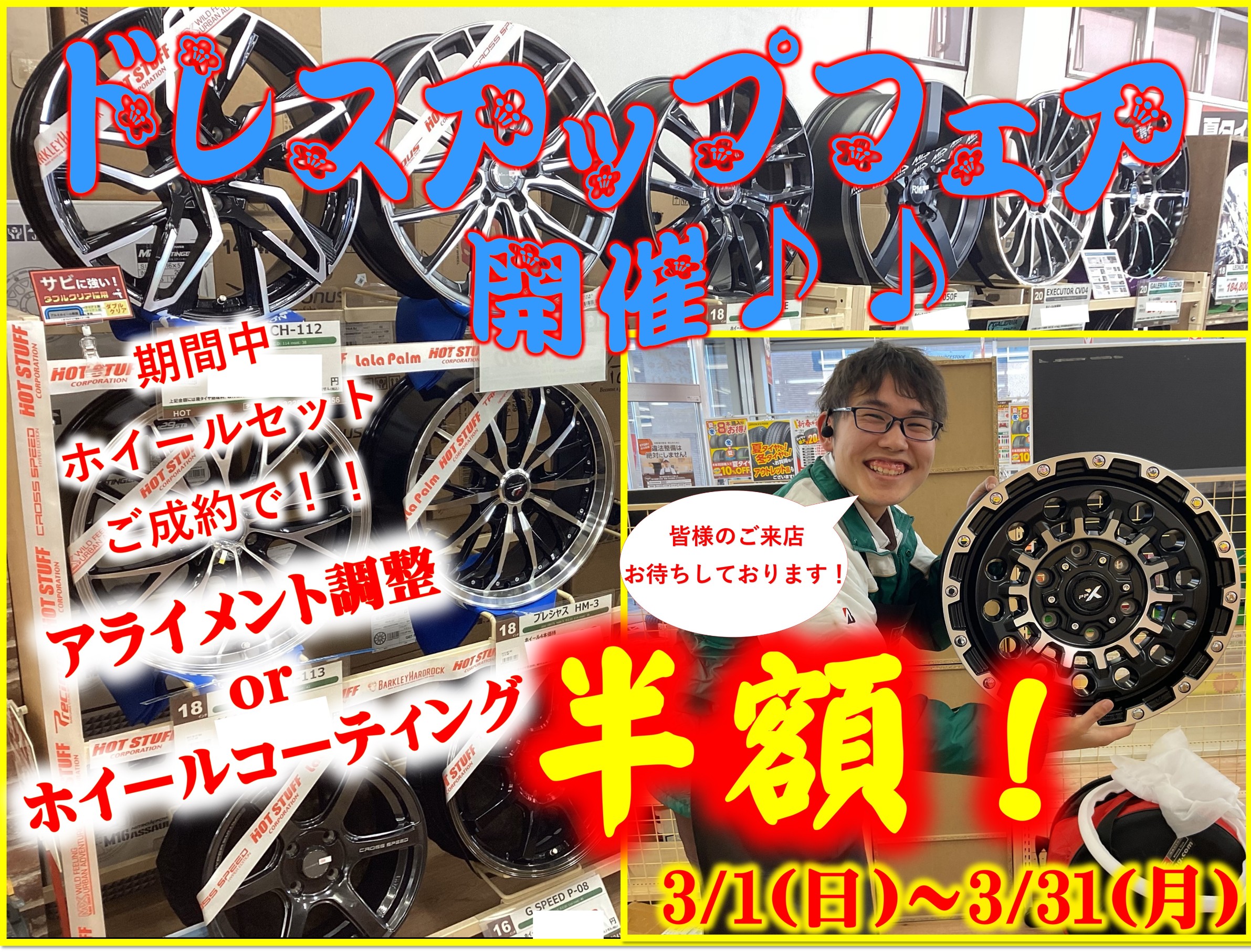選択して頂いた作業(アライメント調整orホイールコーティング)を半額でやらせて頂きます!!