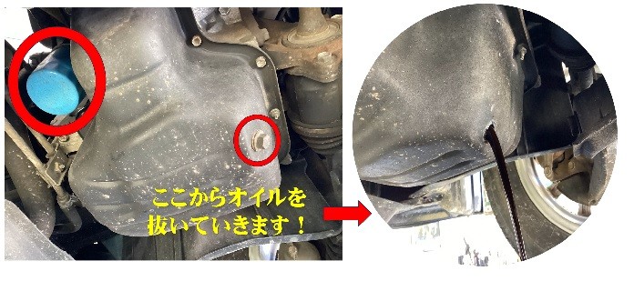 ・まずはドレンとエレメントからオイルを抜いていきます!!