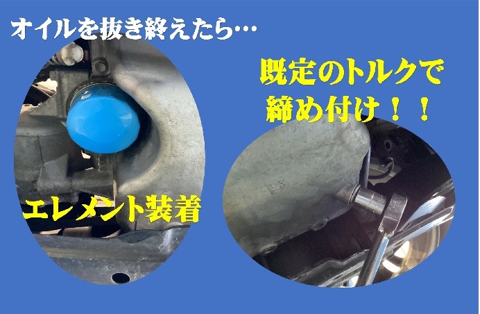 ・まずはドレンとエレメントからオイルを抜いていきます!!