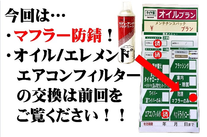 今回は「セレクトメニュー」を使用して「マフラー防錆」を施工します!
