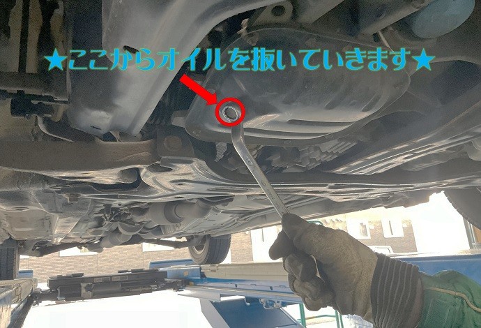 まずはドレンを外してオイルを抜きます!!