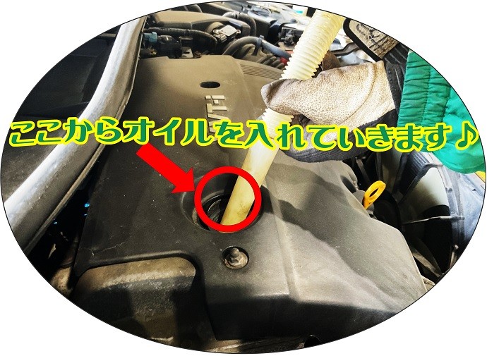 ・エンジンオイルを注入していきます!
