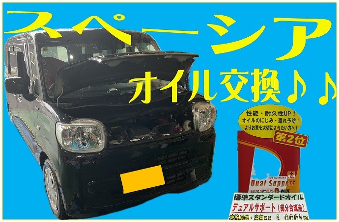 今回は「スズキ スペーシア」のオイル交換をさせていただきました!!