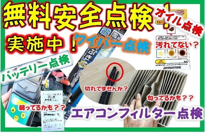 バッテリー、エアコンフィルター、オイル、ワイパーの点検を行っています!