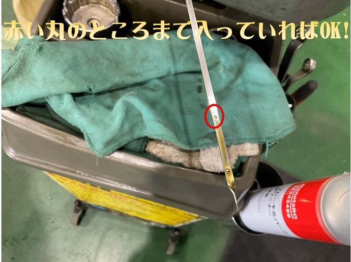 赤丸のところまでオイルが入っていればOK!!