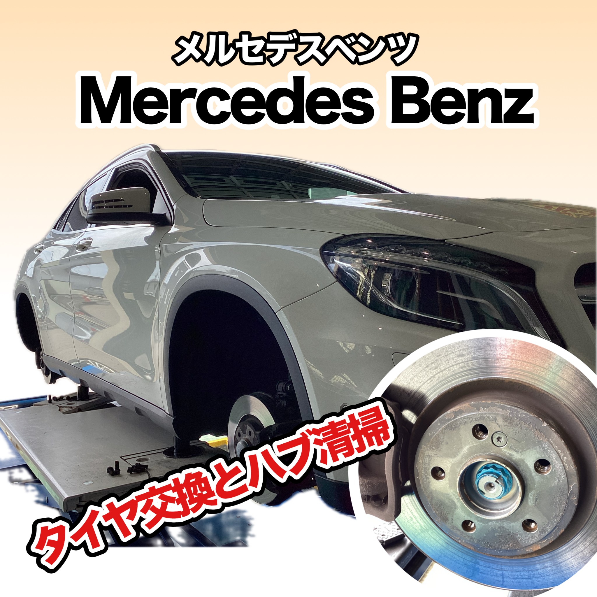 今日はベンツのタイヤ交換とハブ防錆を実施しました。