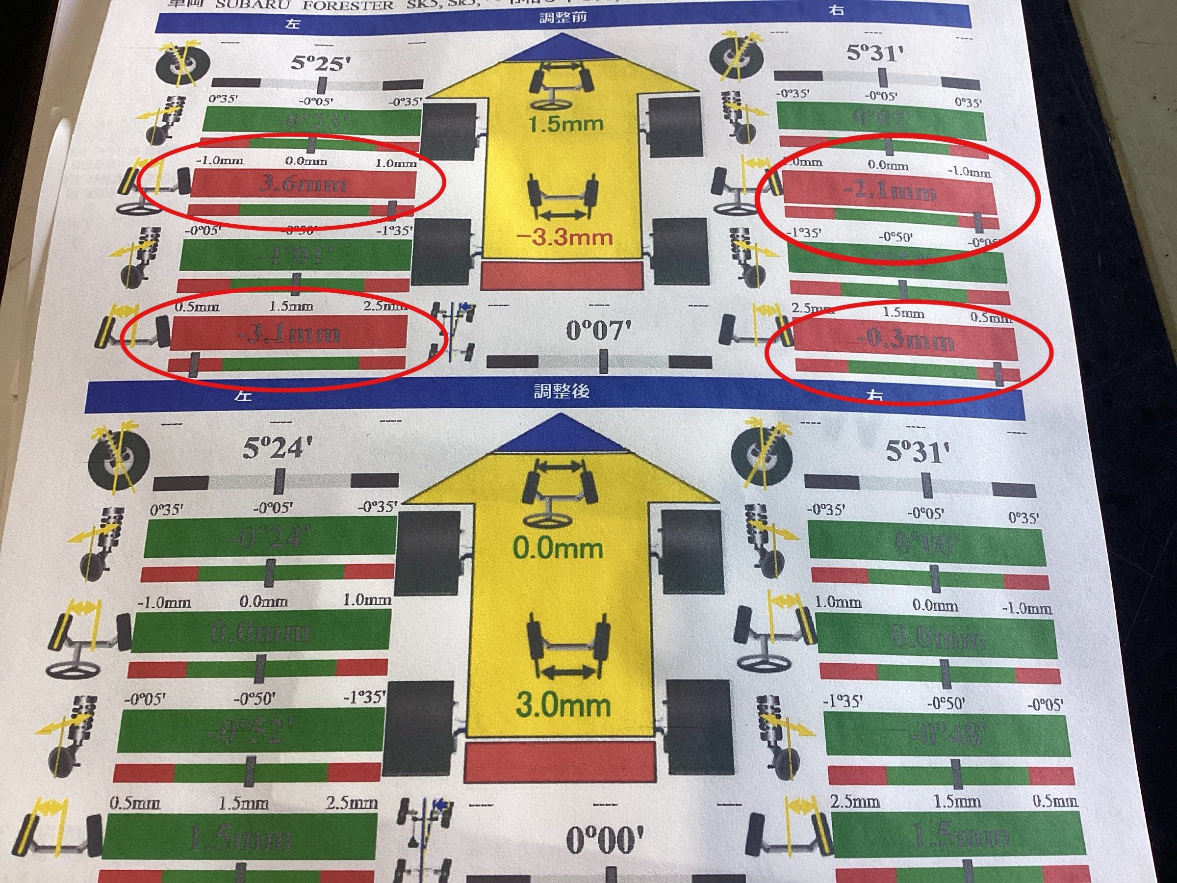 前後トーをキッチリと基準値に調整!