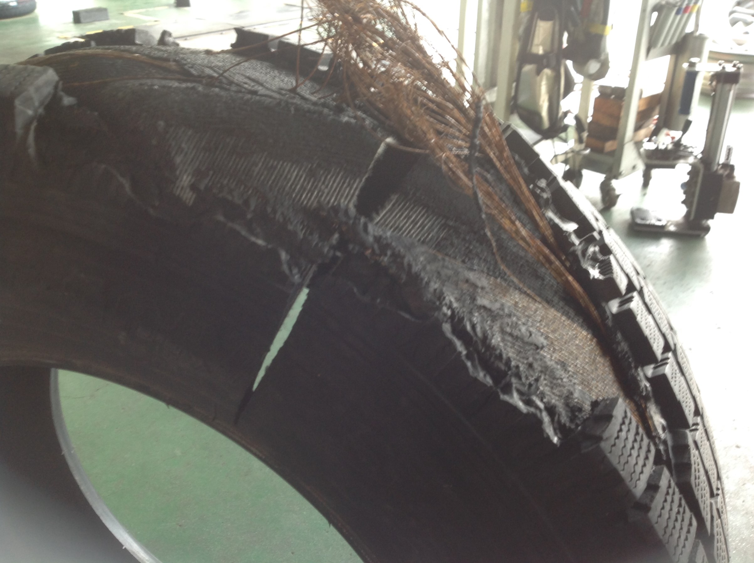 高速道路でタイヤがバーストしてしまったらしくバーストしたタイヤを見せてくれたんですが