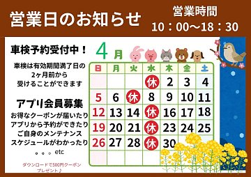 記事一覧 本日4/15は定休日です! いつも当店ホームページをご覧頂きありがとうございます! 当店は本日水曜定休日となっておりますm(__)m 明日木曜日以降のご来店お待ちしております(#^^#) ただいま当店では「スーパータイヤセール 夏タイヤ早期予約大商談会」開催中! 今年夏タイヤご購入のお客様!期間中がお得です( `ー´)ノ 冬... 2026年4月15日 ポスト