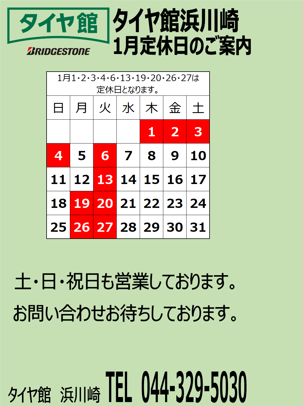 あけましておめでとうございます本年もよろしくお願いいたします。1月1・2・3・4・6・13・19・20・26・27は定休日となります。