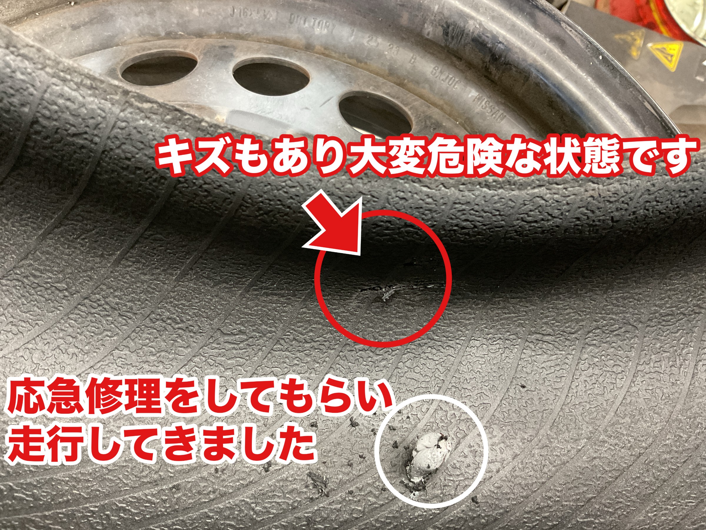 パンクしちゃったので、タイヤ交換してほしいとご来店されました。