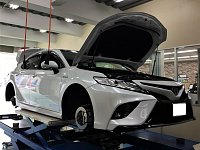 当店のHPをご覧いただきありがとうございます♪ 今回のお車はこちら! 「トヨタ カムリ」です。 トヨタの最新型ラグジュアリーセダン! 鋭いデザインが特徴的なカッコイイ一台です♪ 今回は盛り沢山! 車高調の取り付け、 更にマフラー交換まで行います。 かなり長くなりそうなので、 パートを3つに分...